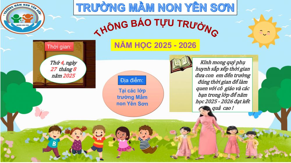 TRƯỜNG MẦN NON YÊN SƠN THÔNG BÁO TỰU TRƯỜNG NĂM HỌC 2025 - 2026